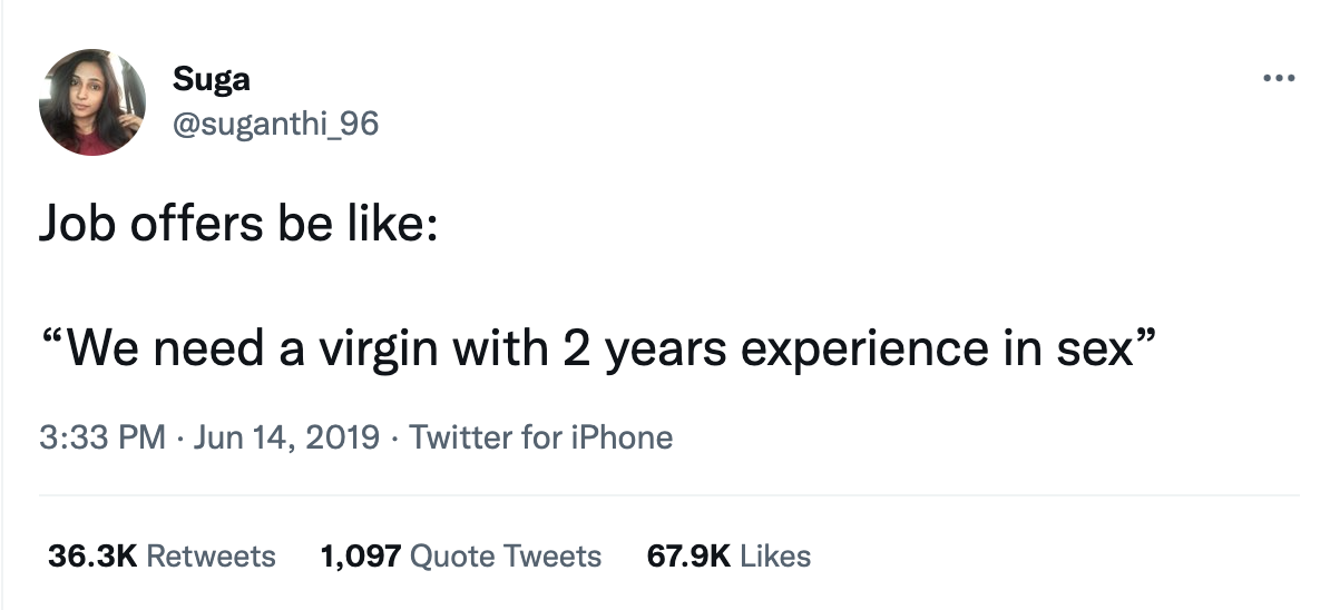 «Нам в компанию нужна девственница, с опытом в сексе не менее 2-х лет». | | | |