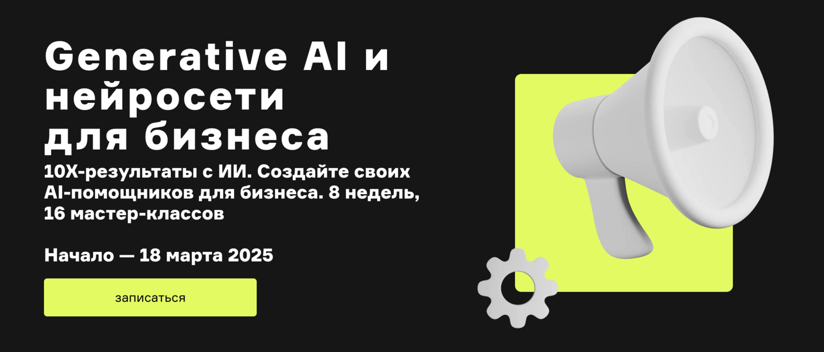 | Успейте записаться на курс «Generative AI и нейросети для бизнеса». Начало — 18 марта в 19.00 мск | | | 18-го марта (вторник) в 19.00 мск начинается курс « Generative AI и нейросети. Создайте своих AI-помощников для бизнеса». - Как понять, нужен ли вам Gen AI? - Как сформировать AI стратегию? Когда покупать, когда делать самим? - Как понять какой продукт нужен вашим клиентам? - Как защититься от конкурентов? - Как сформировать команду и построить процессы? - Как проектировать ваш AI продукт? - Как заставить AI работать корректно надежно? - Как сделать ваш продукт безопасным? - Как свести юнит экономику? - Как запустить ваш продукт на пользователей и не облажаться? До того, как AI-технологии станут мейнстримом, у вас есть окно возможностей:- Опередить конкурентов — внедрить AI раньше других значит получить преимущество на годы вперед